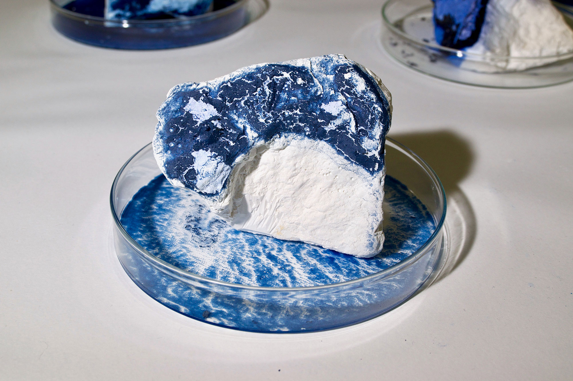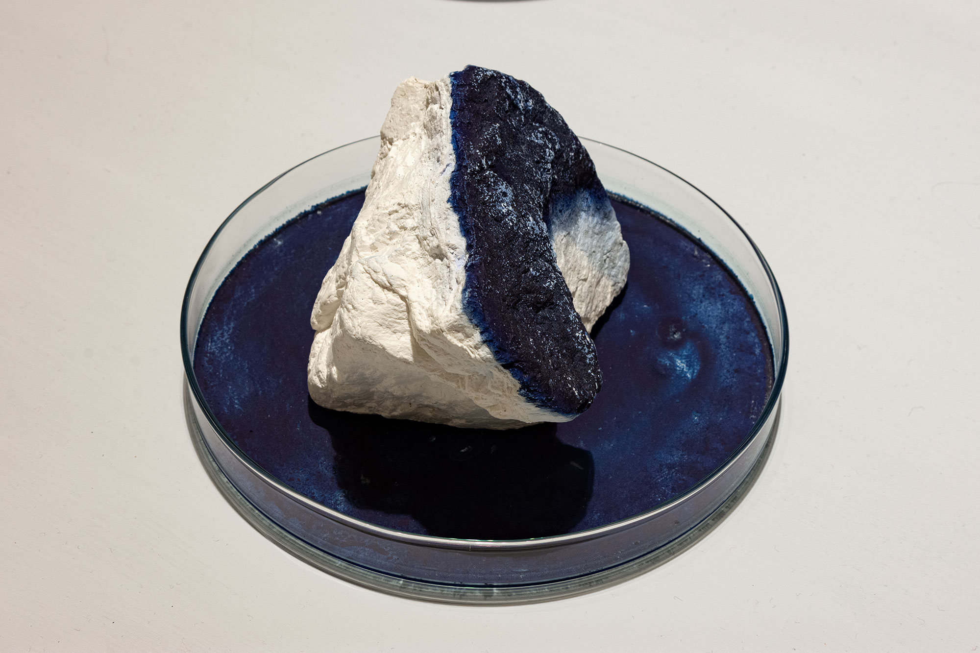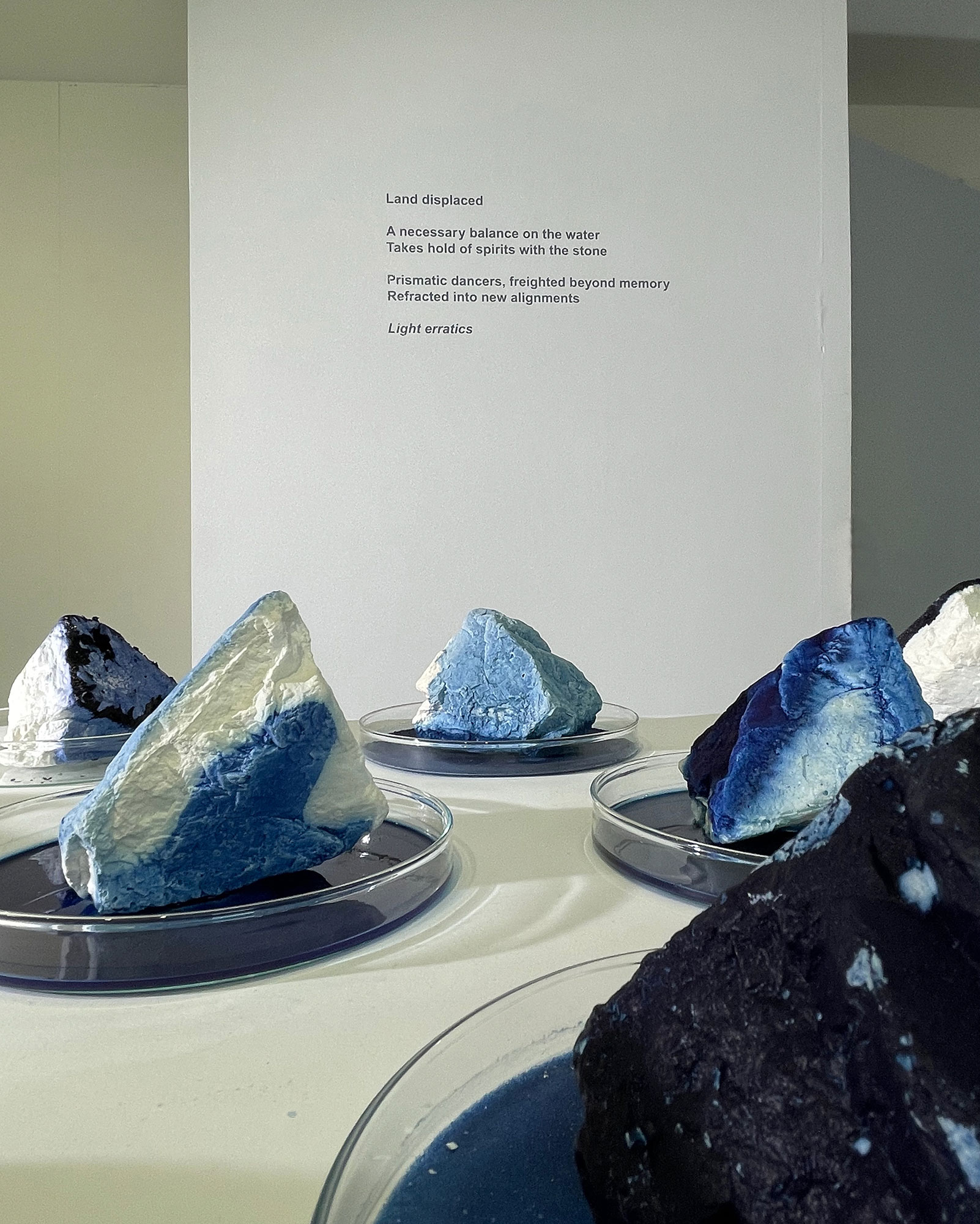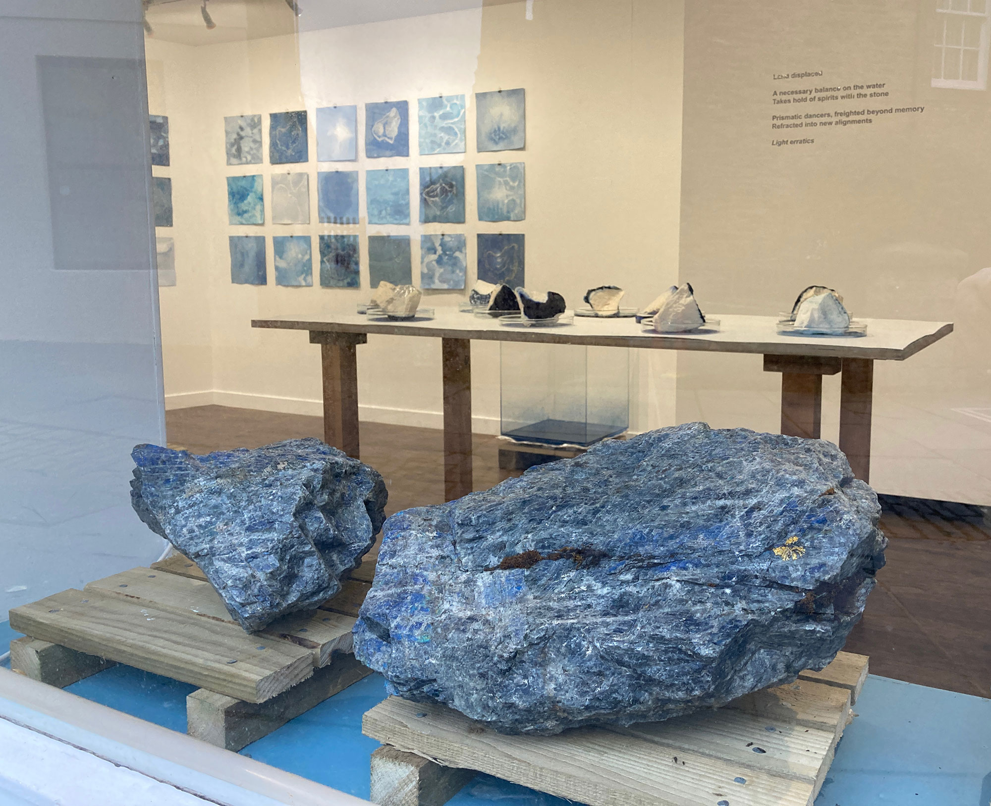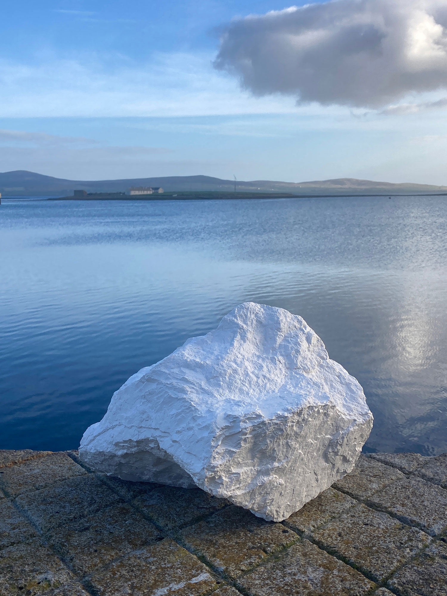 Light Erratic reflects upon a large block of labradorite recovered from the Holms in Stromness. Drawn from the bedrock of Labrador, the block was carried to Orkney in the late 19th century. Labradorite refracts light in a manner that gives it a spectacular iridescence. Associated in Inuit and Innu tradition with the Aurora Borealis and with ancestral spirits, what they called ‘Firestone’ found a new value in Europe as a semi-precious gem.